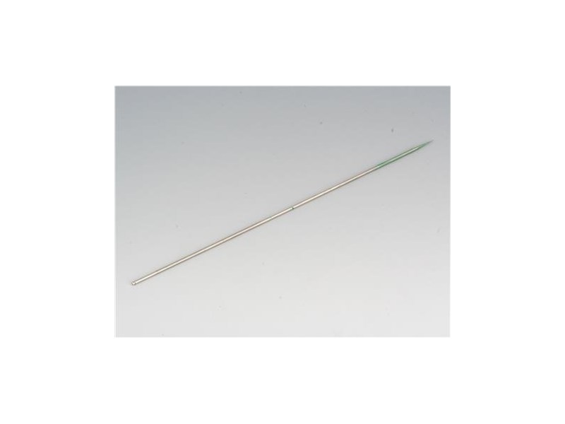 Die konisch zulaufende Nadelspitze öffnet und verschliesst den Farbfluss innerhalb der Düse durch Vor- und Zurückbewegen des Bedienhebels.