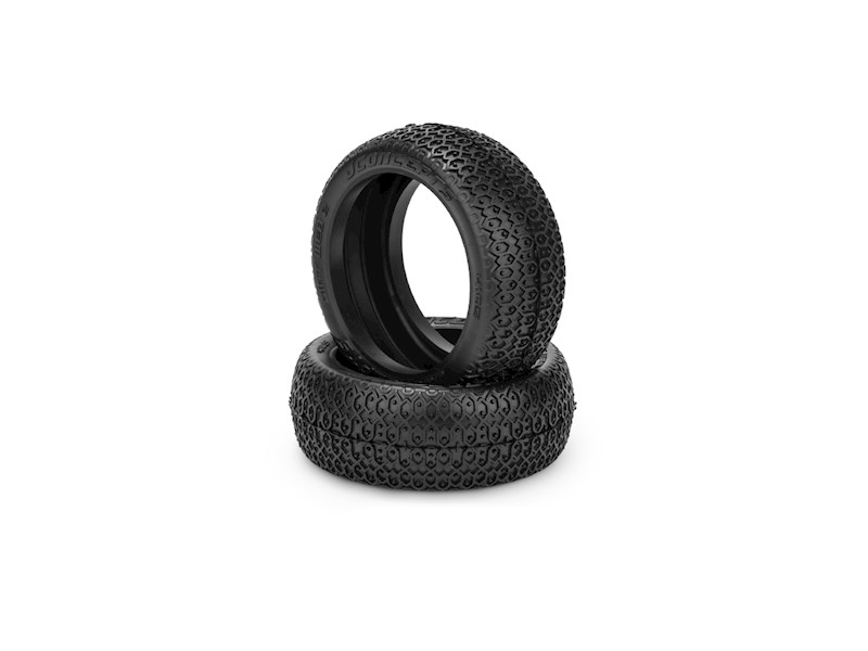 The outer sections pick up with a dense arrangement of the Dirt Web connections and provide plenty contact patch for high-speed cornering. In between the pattern rests small individual pins at lower height to provide additional contact during tire wear. The inner carcass has revolved inner ribbing making it the standard on tracks which require additional grip, slightly bumpy terrain, with patches of dust and debris. The sidewall has authentic JConcepts markings, part number, and embossed logos depicting the naming of the tire.